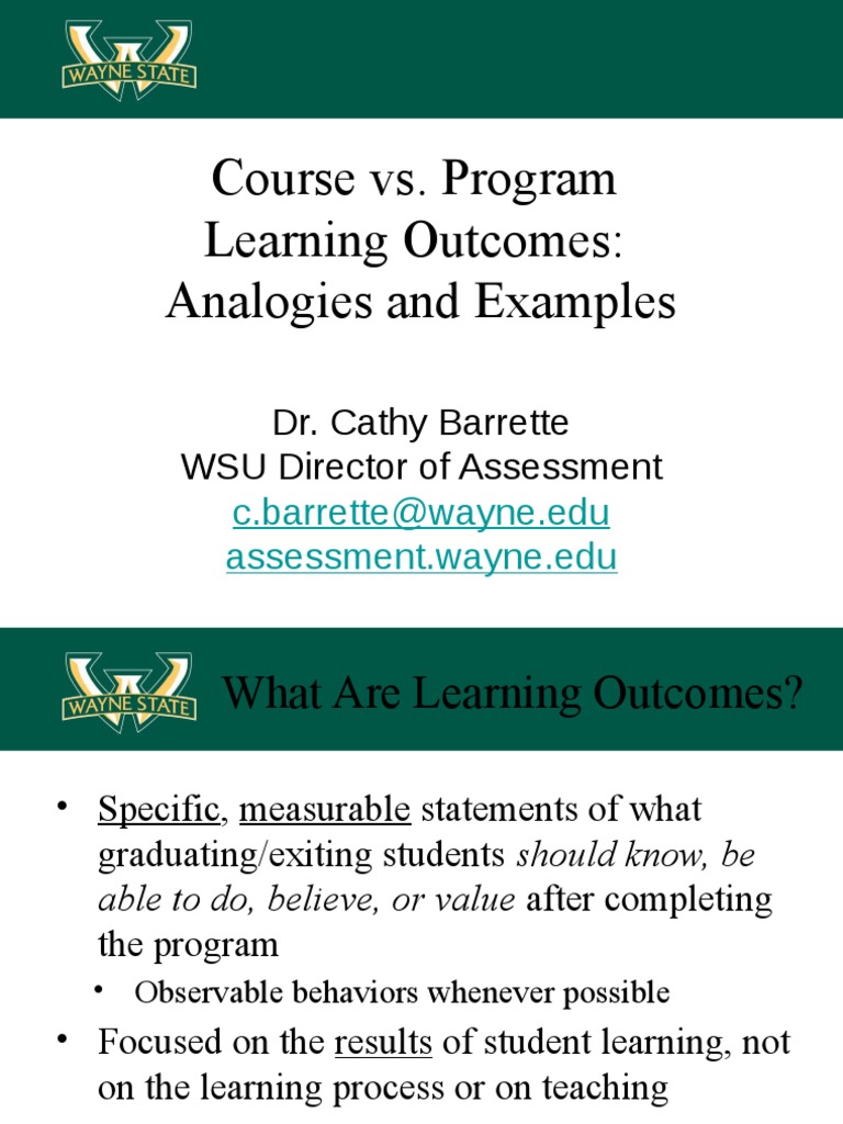 It Provides Examples To Illustrate That Program Outcomes Characterize The Overall Learning And.